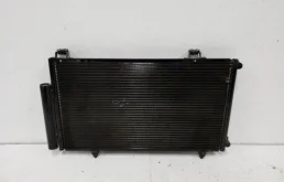 Радиатор кондиционера автомобиля (конденсор) – это теплообменник климатической установки. Размещается перед радиатором охлаждения двигателя. Фронтальное расположение делает его уязвимым перед встречными камнями или лобовым столкновением, даже лёгким. А ещё теплообменник подвержен разгерметизации, если собственник игнорировал его обслуживание. Ведь без циркуляции фреона со специальным маслом, внутренние детали системы окисляются и пропускают хладагент. Дольше всего служат оригинальные детали. Заказывать новую и ждать поставку долго, а брать дешёвый аналог – тревожно. В качестве альтернативы можно купить контрактный радиатор кондиционера Toyota Yaris с б/у авто на разборе.